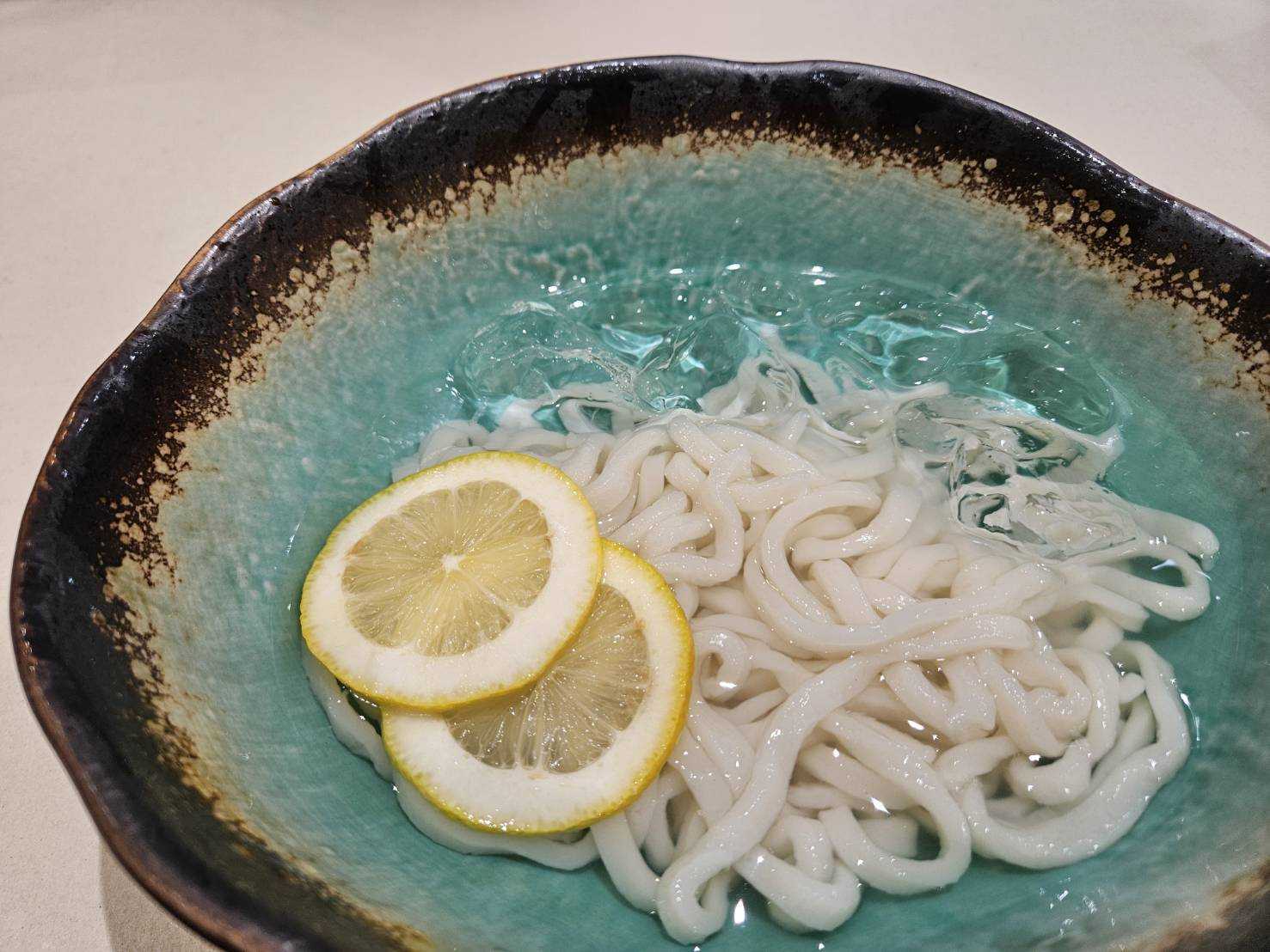 この商品は実際に店内で販売している商品です。小麦の麺と違って、冷たい水に長く浸けていても伸びにくく5~10分ほど置いて頂くと芯まで冷たいのに食感が変わらずますます美味しくいただけます。