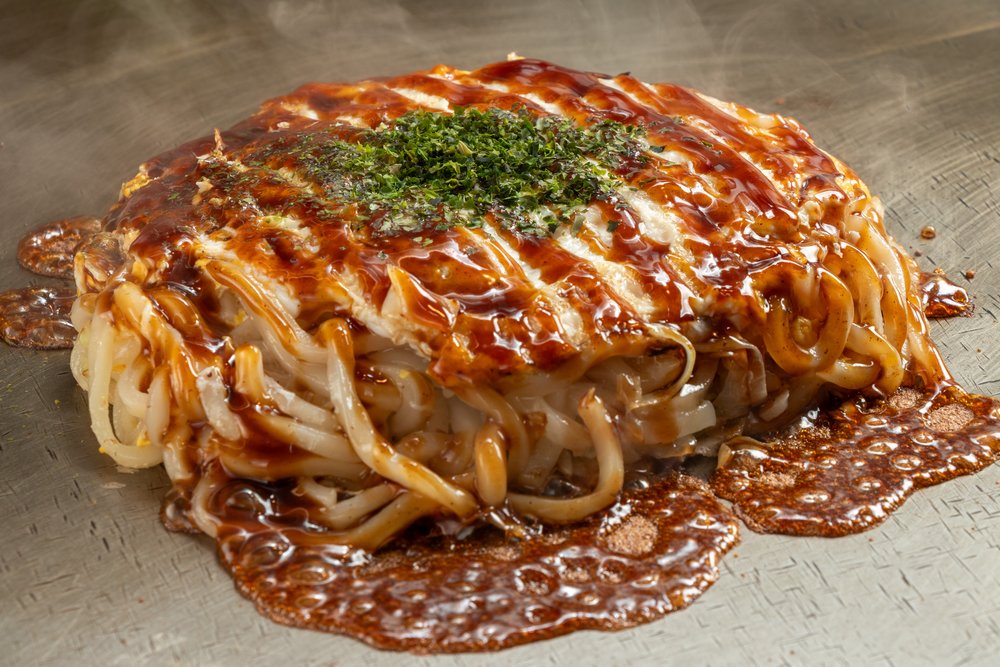製麺所の向かいにうどんを使用したundoお好み焼き。